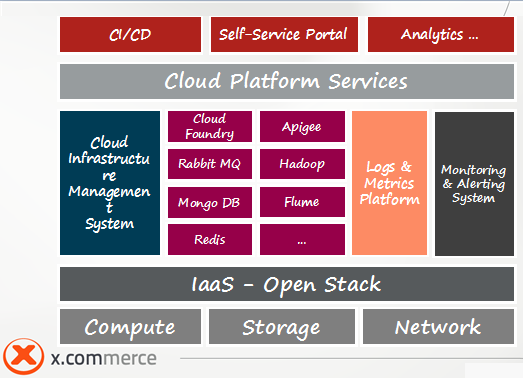 X.commerceサービスでは、OpenStackを用いたECサイト向けプラットフォームにOpenStackをIaaS基盤部分に使い、その上位に多数のミドルウェアを組み合わせSaaSとしていました。当時もOpenStackを用いた大きなビジネス利用としても注目が集まっていました。
