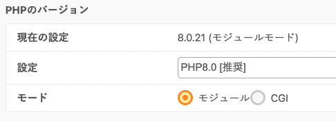 つまり、さくらのレンタルサーバをご利用のお客様は「PHP8.0(または7.4)」の「モジュールモード」の利用がおすすめ!という事になります。