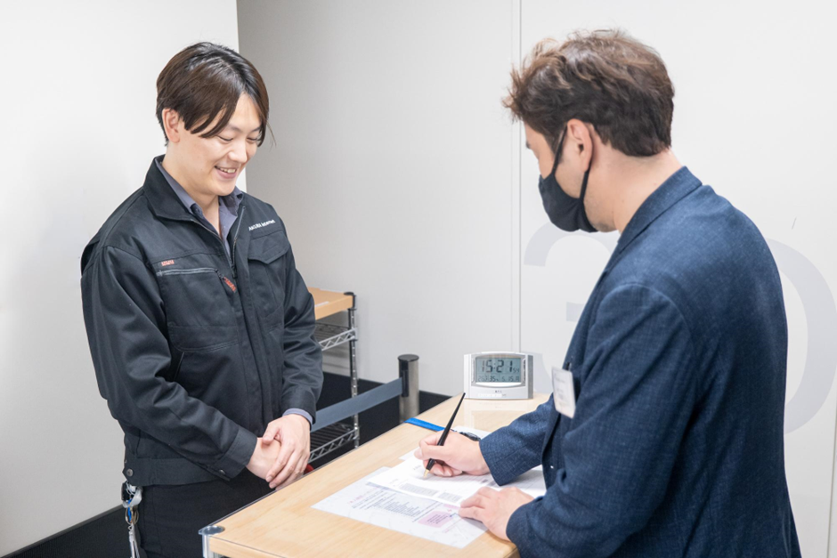 そうなんですよ。対面でのお客さまとのやり取りには、前職の営業経験を活かせていると感じますね。所作や言葉遣いなどについては、新人スタッフへの教育時に見本となれるように意識して取り組んでいます。