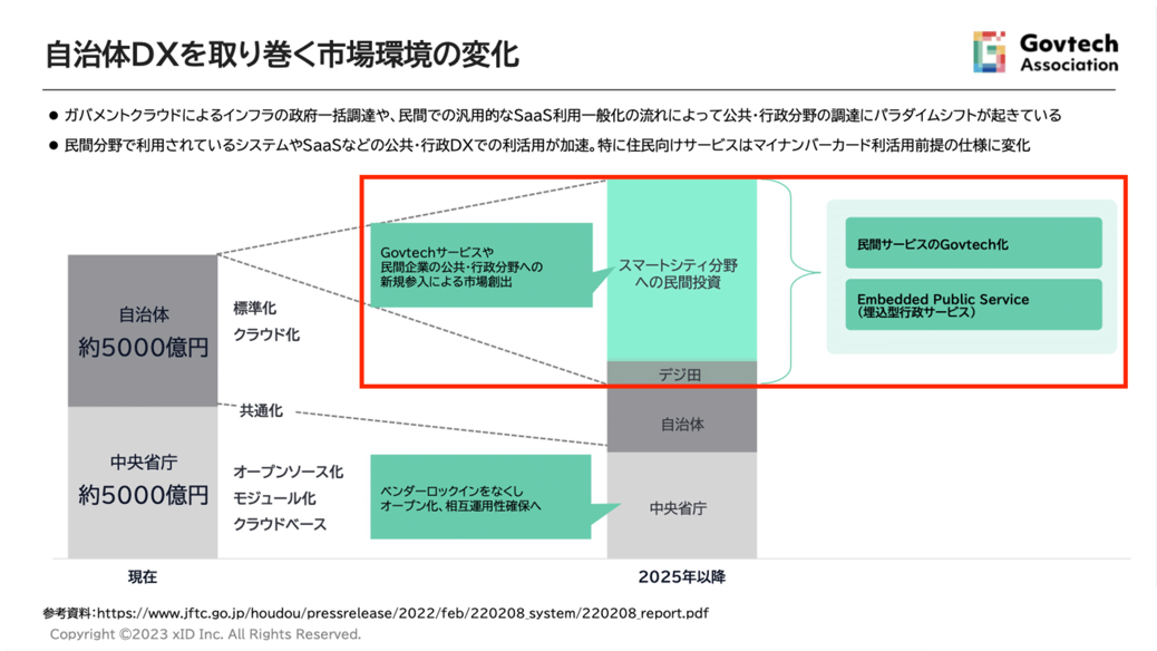 「たとえば、マイナンバーカードは政権が変わったとしても不可逆性はない(覆ることはない)と判断できる。今後、このカードありきで行政サービスが提供される流れは変わらないだろうと判断して我々(xID株式会社)は事業に乗り出しました。ただ、公共分野は政策ひとつで事業のゆくえや成否が変わってしまうリスクがある。各企業が長い目で見て『この政策は今後も変わらないのか』『普遍的か』『不可逆性があるのか』を判断するのは非常に難しいのが現状です」