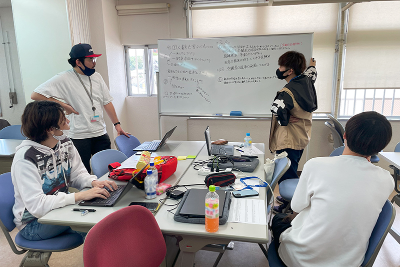 この工程がじつは鬼門。これまで会話でなら伝えられたことも、いざ資料に落とし込もうとするととても難しいのです。文字に起こしたり図表を作ったりするためには、自分たちの中で発表内容の解像度を上げなければなりません。アイデア自体は考えられるけれど、それを具体的かつ論理的に、聞き手を納得させる形にしていく作業はこれまであまり経験がなく、苦戦した学生も多かったようです。
