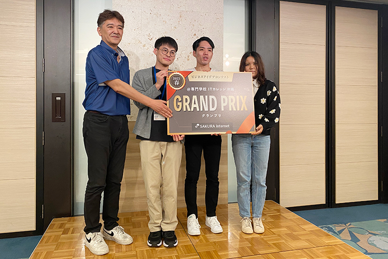 専門学校ITカレッジ沖縄の奥戸 類(おくと るい)学校長からは「本校ならではの味がある、非常によいプレゼンを楽しませてもらいました。この経験を糧にして、就職活動にも精を出してほしいです。また、さくらインターネットともぜひ良好な関係を続けていけたらと思います」とのお言葉をいただきました。