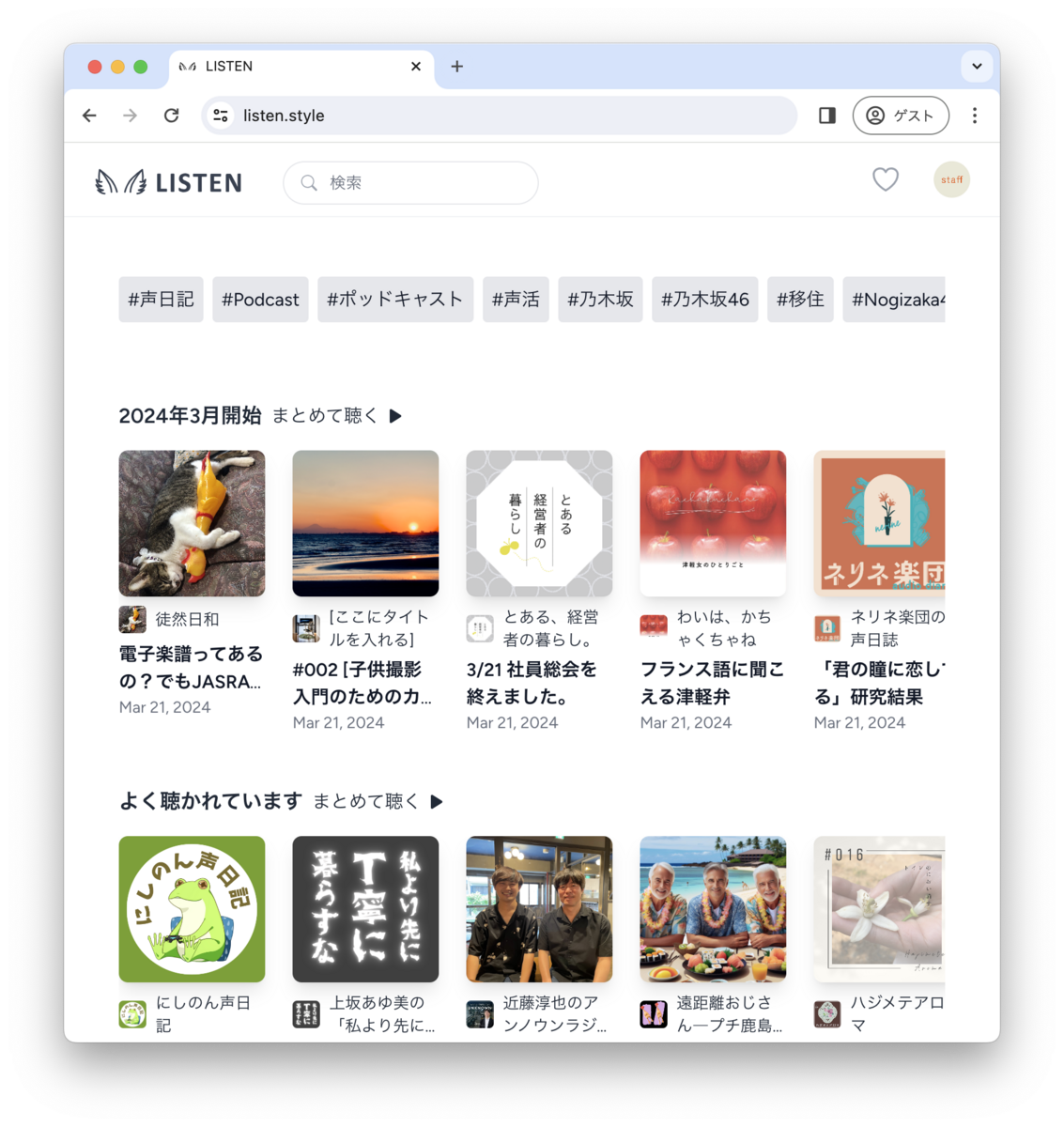 「『今日は会社に行ってこれをやって、そのあとこんな買い物しました』といった、本当になんでもない日常を毎日のように配信している方もいます。それが結構おもしろいんですよ。メインのポッドキャストはSpotifyで配信されていて、サブ番組のように『LISTEN』で声日記を投稿してくださる方もいます。