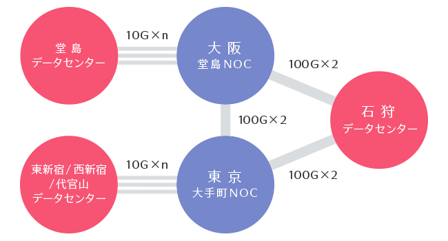 さくらインターネットでは、各データセンター間もギガビット以上での冗長構成で接続。「高い安定性」と「高いスループット」を実現しています。