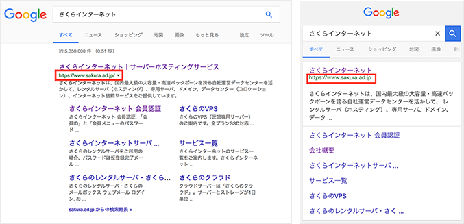 このように検索結果にも「https://」からはじまるURLが記載され、SSL化されたwebページであることを明示することができるため、初めてアクセスしてくる方も安心して開くことができます。