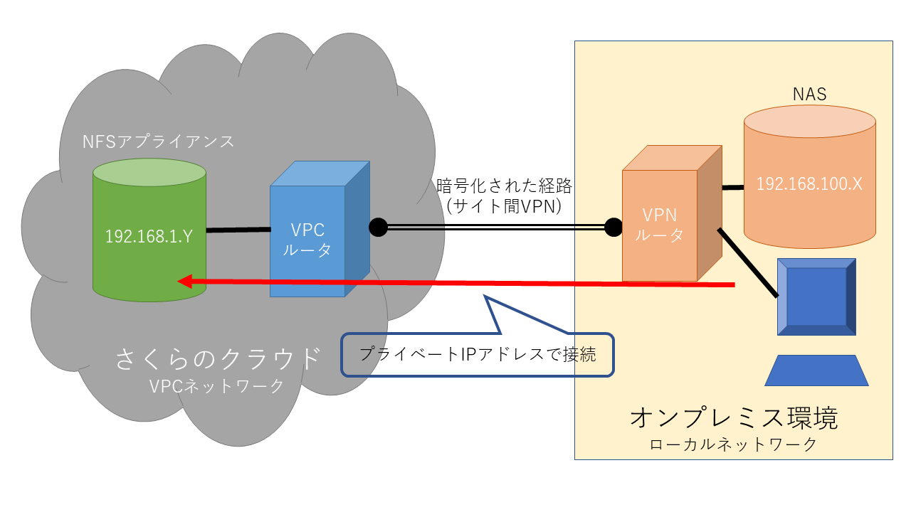さくらのクラウドでは、NFSアプライアンスを提供しています。オンプレミス環境で運用しているNASのバックアップ先として利用することも可能です。