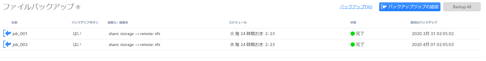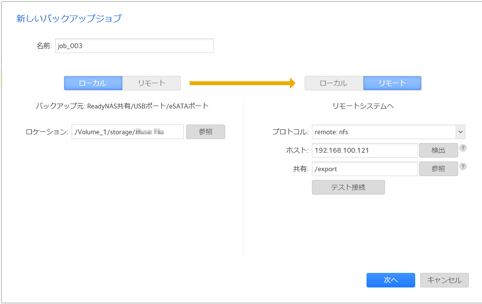 今回はローカルのNASより、リモートのさくらのクラウドのNFSアプライアンスへバックアップを取得します。