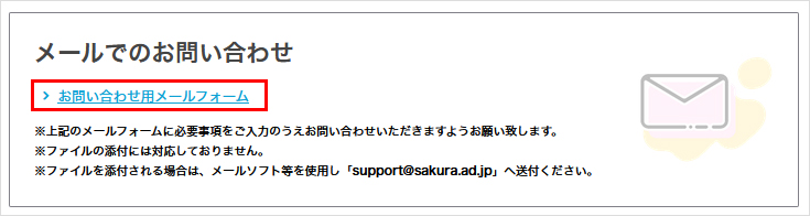 2会員メニュー左側「サポート」欄の『メールでのお問い合わせ』をクリックします。
