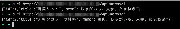 {"id":2,"title":"チキンカレーの材料","memo":"鶏肉、じゃがいも、人参、たまねぎ"}