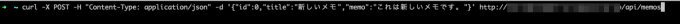 次はPOSTを用いたデータの新規作成です。こちらもまずcurlコマンドで実行してみます。