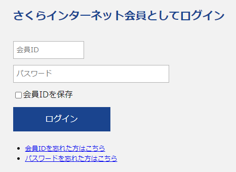 - 画面左側の「さくらインターネット会員としてログイン」に、会員IDをとパスワードを入力してログイン
