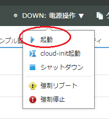 右上の「電源操作」から「▶ 起動」をクリックします。