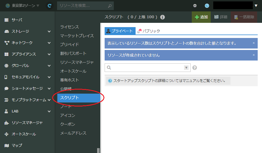 サーバを作成する前に、使用するスクリプトを登録します。