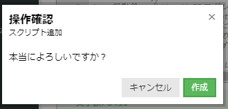 スクリプト追加画面に次の内容を入力し、最下部にある「+ 作成」をクリックします。