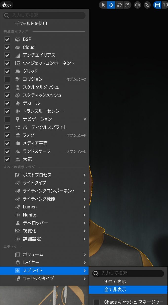 エディタ内のアイコンが邪魔な場合は「表示」-「スプライト」-「すべて非表示」にします。