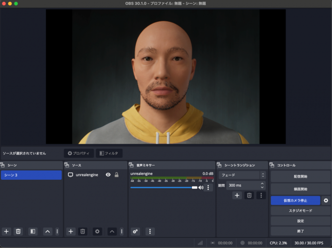 Unreal Engineのレンダリング画面を仮想カメラにする方法はWindowsではたくさんありますが、Macでは選択肢が少ないです。今回はOBS Studioのスクリーンキャプチャと仮想カメラを使用します。Unreal EngineのエディターをOBSでウインドウキャプチャし、仮想カメラとすることで他のビデオ会議アプリケーションに参加することができます。