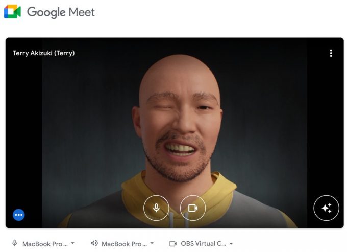 下図はGoogle Meetで「OBS Virtual Camera」を選択した状態です。