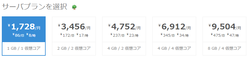 アーカイブからサーバを作成する際、アーカイブ元のサーバと異なったサーバプランを選択することも可能です。