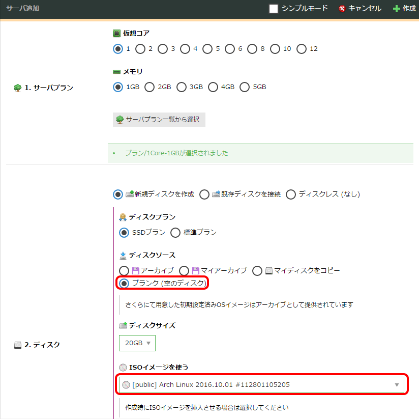 それでは、さくらのクラウドに仮想サーバを作成し、Arch Linuxをインストールしてみましょう。