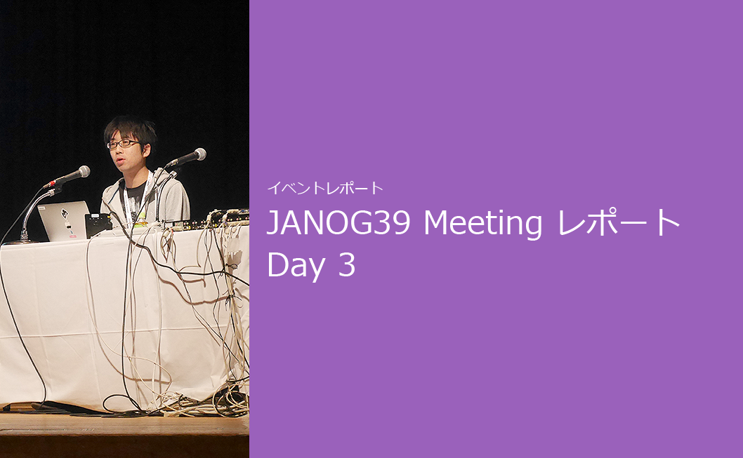 JANOG39のレポートを3本の記事に分けてお送りしました。冬の金沢での開催にも関わらず、750人もの方が参加されるという、JANOGミーティングの楽しい雰囲気が少しでも伝わればうれしいです。