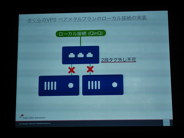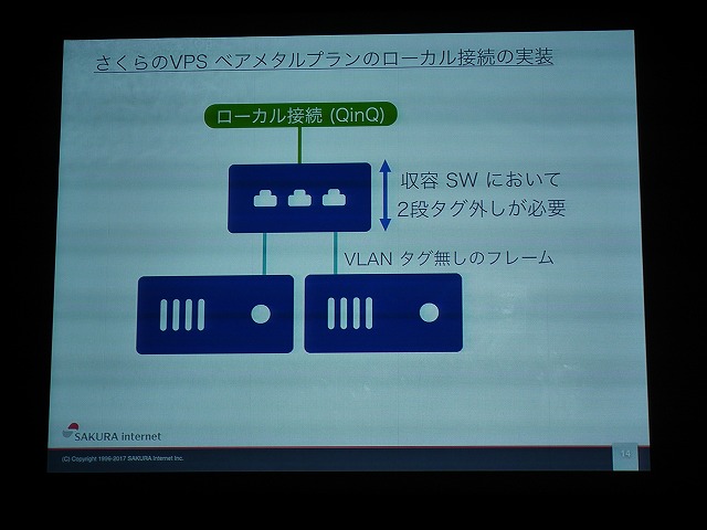 さくらのVPSでは、QinQという方式を用いてローカルネットワークを実現しています。さくらのVPSでは、2016年2月に新たにベアメタルプランを追加しました。当初はベアメタルプランでもQinQを使用することを検討していましたが、使用するスイッチの仕様上、VLANを用いることになり、QinQとVLANを変換する仕組みが必要になりました。