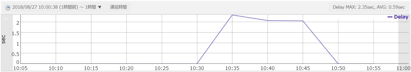 アクティビティグラフでは、通常のデータベースアプライアンスに表示されるネットワークトラフィックやディスク使用量のほか、マスター側との同期遅延時間を確認することができます。