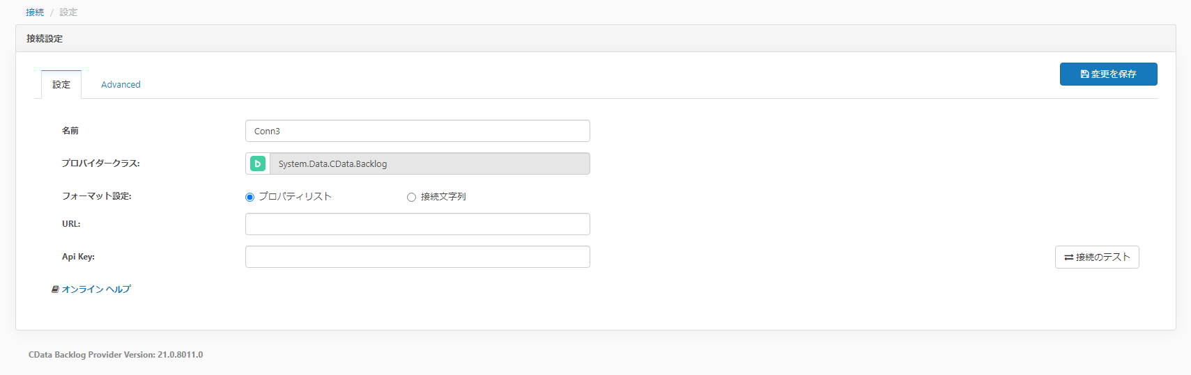 CDate Sync Backlog接続設定画面