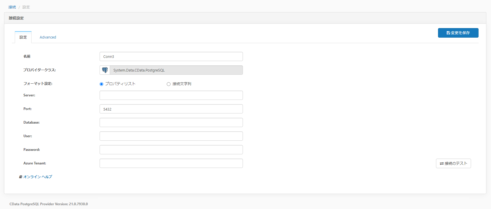 管理者設定のデータベース追加により以下を再度指定します。