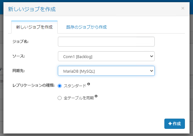 | Datebase名 | 作成済のDB名 |