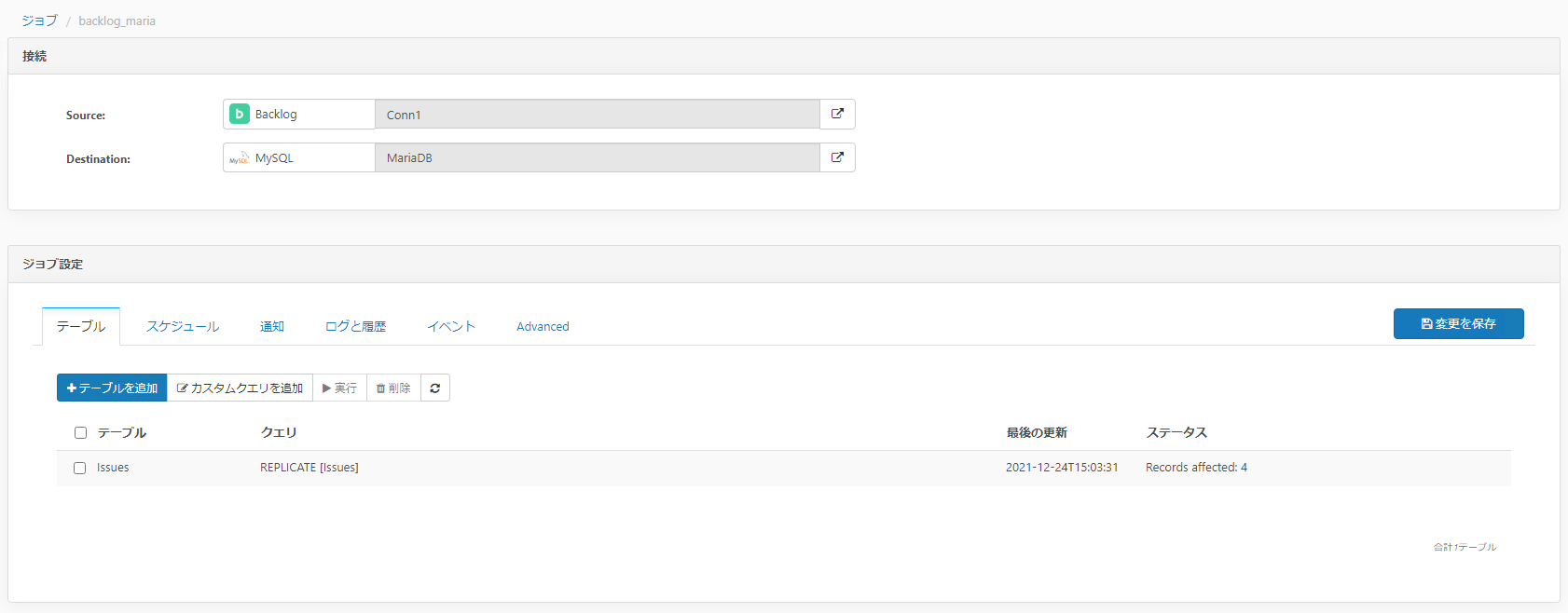 CDate SyncにbacklogとDBのアクセス情報を設定します。