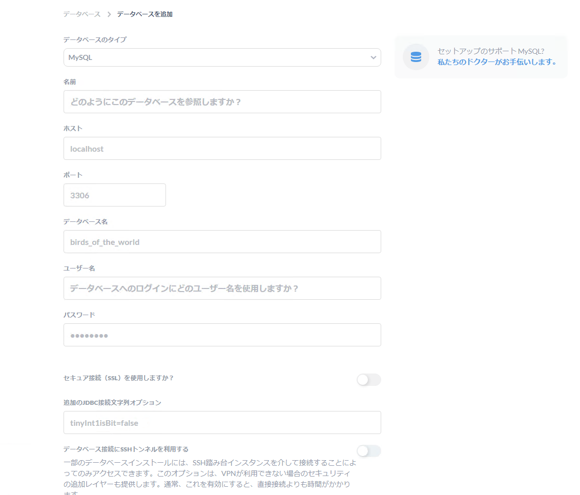 Metabase DB追加画面