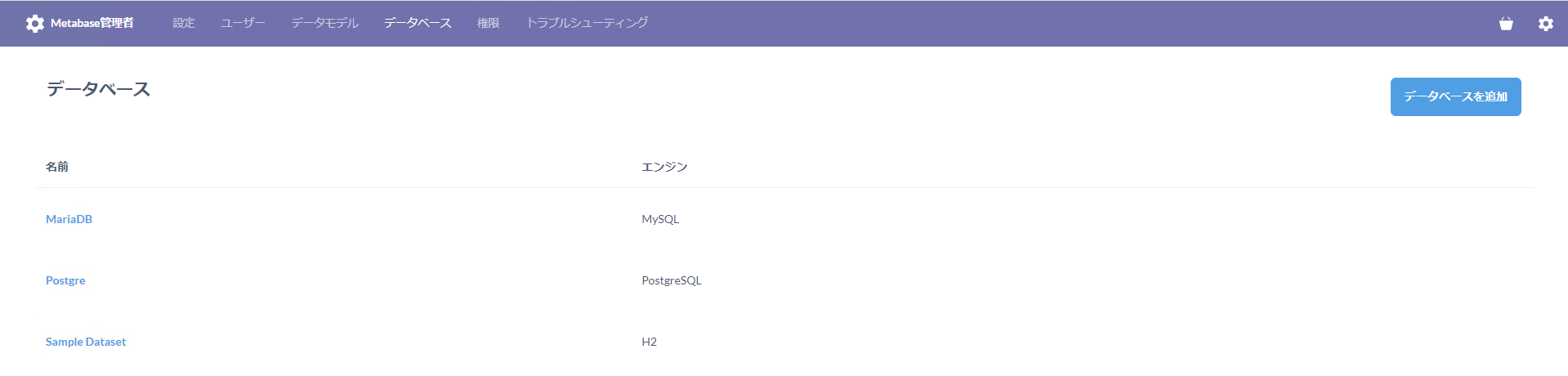 Biツールにデータベースを登録(Metabase)¶