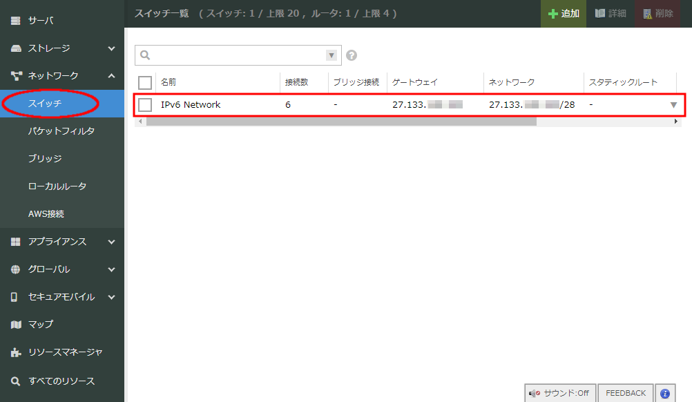 スタティックルート機能で追加可能なIPアドレスブロックは、ルータ+スイッチ1個につき20ブロックまでとなります。