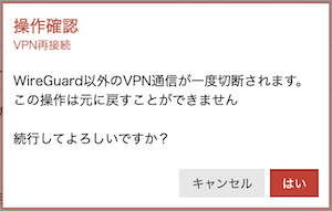 「VPN再接続」ボタンを押すと確認画面が表示されます。