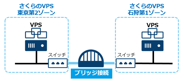 さくらのVPSのゾーン間のローカルスイッチを接続するには、ハイブリッド接続とブリッジ接続の2種類がありますが、ブリッジ接続を利用することで書面での申込なしにオンデマンドで接続が可能です。