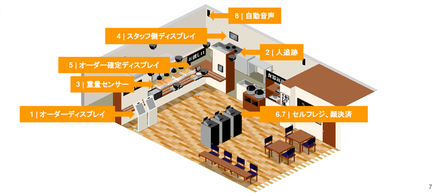 入店から、うどんや天ぷらを選び、食事を終えて会計するまで、一度も財布を出さない「完全なる手ぶら決済」。これまでに開発した、人を追跡する技術や顔認証システムに加え、新たな重量センサー技術を組み合わせたシステムであった。従来であれば、このシステムをクライアントに提供するまでが同社の業務領域であったが、その枠を越えたプロジェクトとして展開することになった。