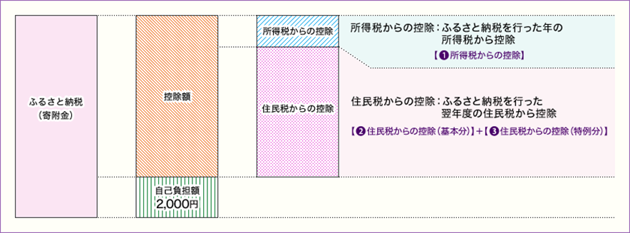 なお、ふるさと納税は、寄付した自己負担額から2,000円を差し引いた額が、翌年の所得税(復興特別所得税を含む)および個人住民税から控除される仕組みです。
