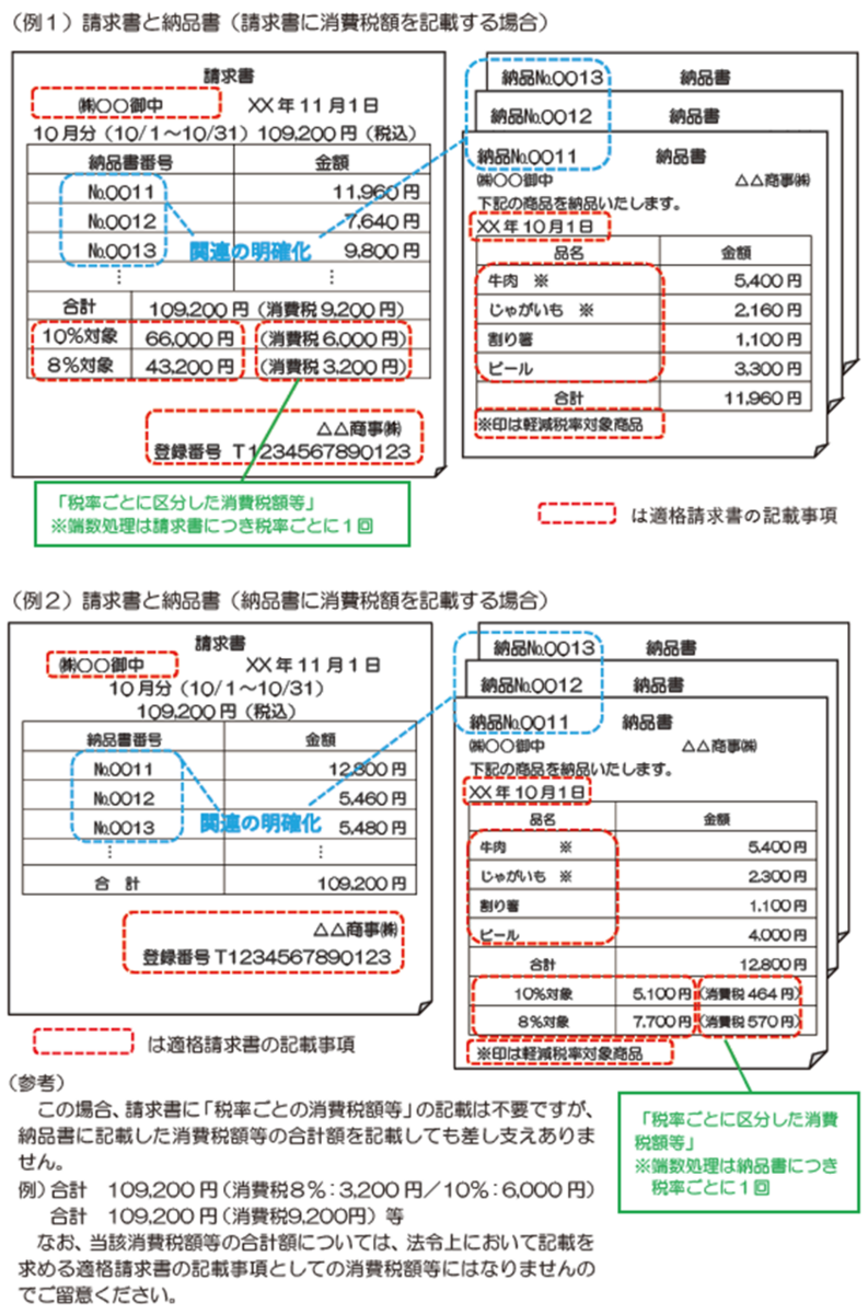 つまり、単数処理までおこなって算出した「税率ごとに区分した消費税額等」の記載は、いずれか1つの書類に記載すればよいということです。