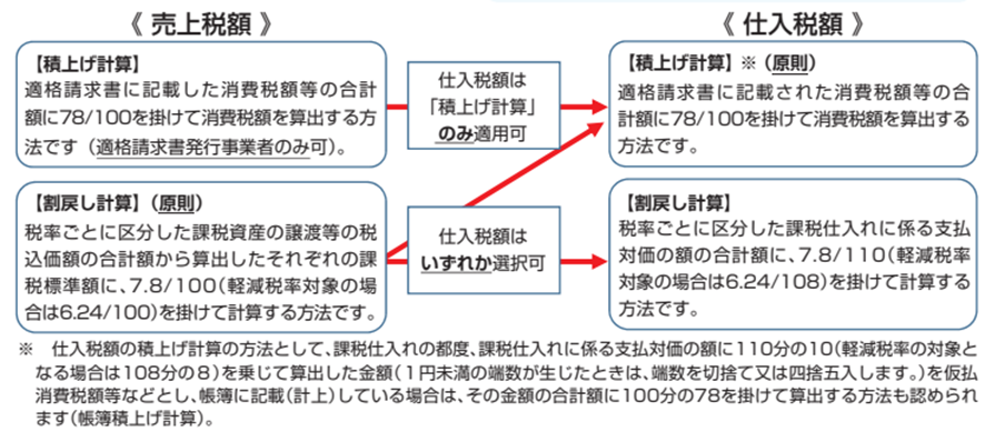 - 「割戻し計算」…課税仕入れの金額×7.8/110(軽減税率の場合は「6.24/108」)