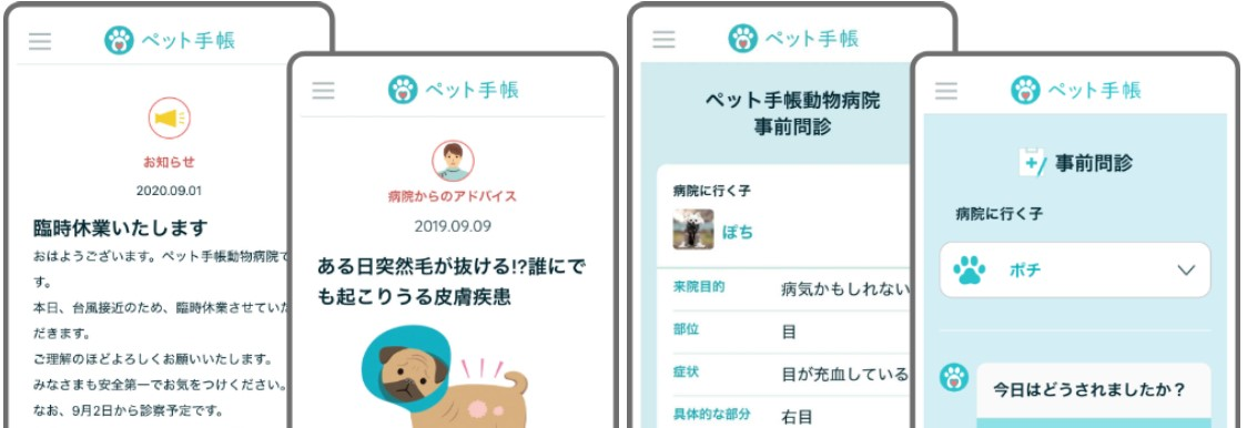 かかりつけの動物病院からお知らせやメッセージが届き、生活に役立つアドバイス記事が読めます。
