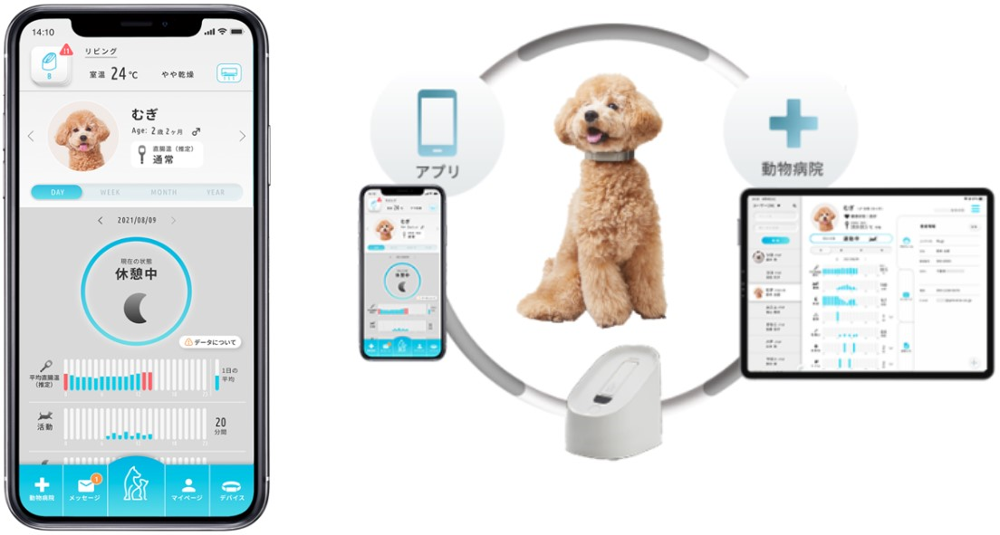 体温に限らず、もしなんらかの変化を察知した場合には通知が届き、獣医師へのオンライン相談や来院予約が可能で、その際、取得したデータを活用することができます。