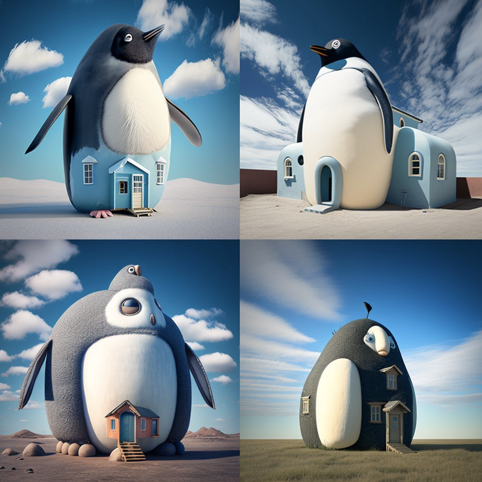 髙橋さんは、AIで妄想建築の画像を作成し、Instagramにアップしている。ペンギンの形をした家やポップコーンの家など、常識を疑うようなデザインばかりだ。