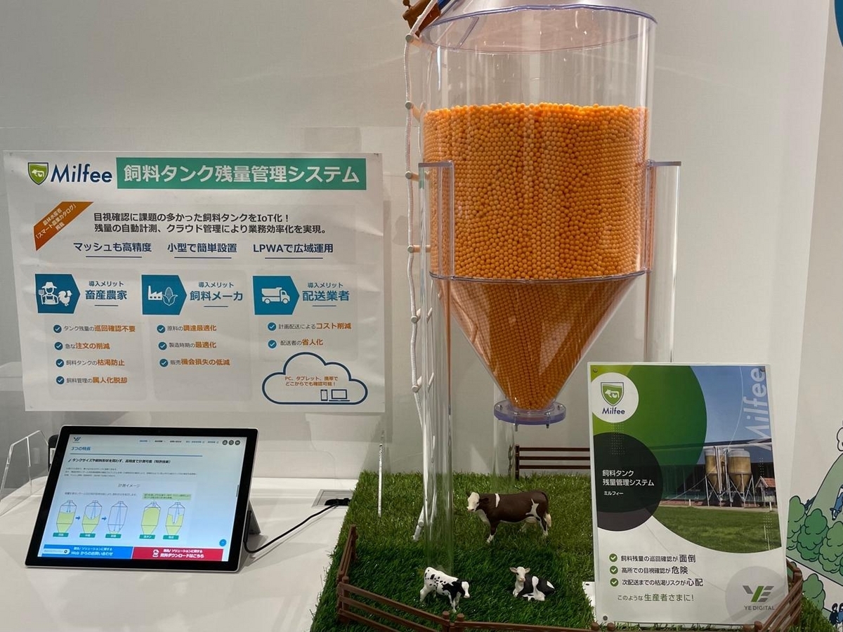 酪農業への展開例としてユニークなのは、家畜の食料をストックするタンクの残量をほぼ正確に測量できるシステム「飼料タンク残量管理ソリューション Milfee」だ。