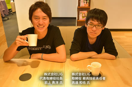 株式会社LIG(リグ)……と聞いてどんなイメージがありますか?『伝説のウェブデザイナーをさがして…』『結婚のご報告。30年彼女がいなかった僕が、秒速で結婚できた理由』…そんなハイテンションなネタ系記事を発信しつづけるオモシロ軍団……と思う方が多いかもしれません。そう、今回取材を行わせていただくまでインタビューワー自身そう思っておりました。しかしこの記事を読んでいただければLIG社に対するイメージが60度くらい変化するはずです! ということで、本業はWEB制作会社であるLIG社のWeb開発にかける思い、エンジニアに対する考え方、そしてさくらインターネットとのカンケイについて代表取締役の岩上社長、CTO高遠氏にお話をうかがいました。
