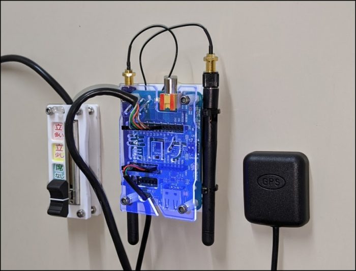 そこで、高野氏はバス車内の密情報を4段階に分けたレバーを設置。運転士がバスの状況を判断してレバーを操作し、その結果をsakura.io経由で送信。密情報と位置情報を同時にクラウドで共有することで、今では利用者がGoogle Mapと自社バスロケアプリで密情報を確認できるようになっています。このレバーも1セット300円ほどの市販品で作成できたとのことです。
