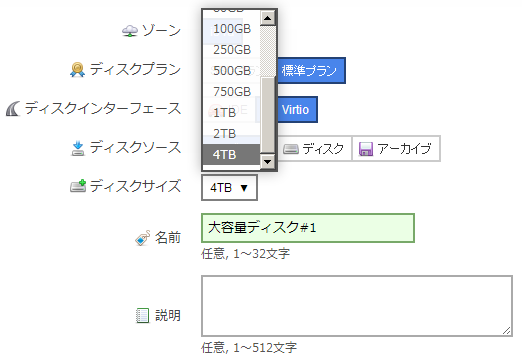 アーカイブの作成完了後は、アーカイブからディスクを作成して既存のサーバに接続したり、サーバ作成時にアーカイブからディスクを作成することが可能です。
