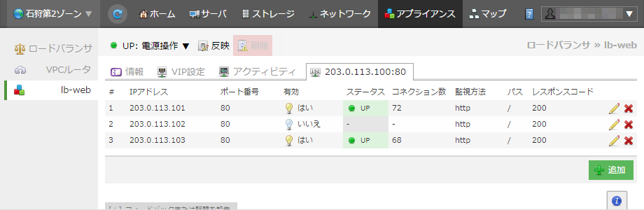 さくらのクラウドで提供する「ロードバランサ」アプライアンスにおいて、配下に登録された実サーバの「有効」・「無効」を指定できる機能を追加しました。