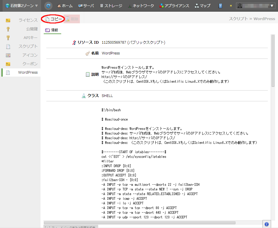 ■ WordPress (スタートアップスクリプトID: 112500569787)