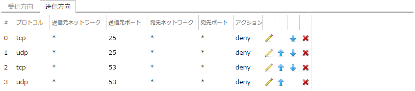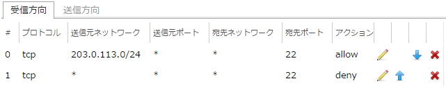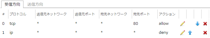 ※いずれの条件にもマッチしないパケットはallow動作となり、ファイアウォールを通過します