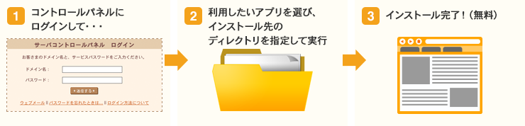 ※アプリケーションは複数インストールすることが可能です。(例:「WordPress」と「MovableType」の双方をインストール可能)